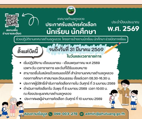 โครงการจ้างงานนักเรียน นักศึกษา ช่วงปิดภาคเรียน ประจำปีงบประมาณ พ.ศ. 2569