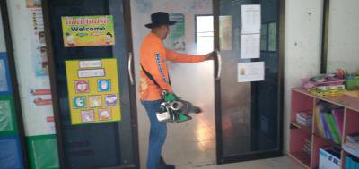 พ่นยาฆ่าเชื้อโรคโรงเรียนบ้านหลุมเงิน ก่อนมีการเปิดภาคเรียน