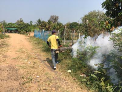 พ่นหมอกควันระงับการระบาดของโรคไข้เลือดออก บ้านหนองนกเขียน หมู่ 2